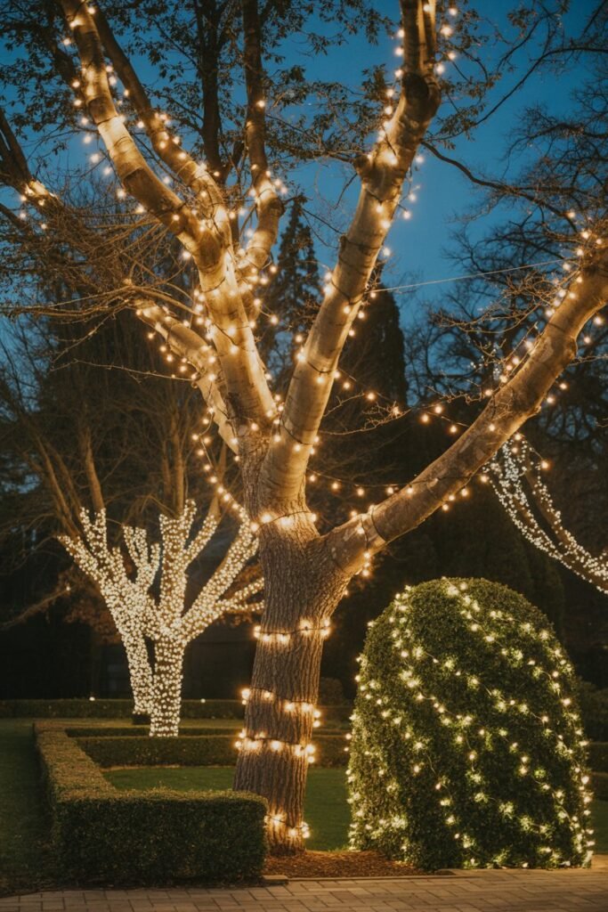 I love the whimsical feel that string lights wrapped around tree branches create. This approach works beautifully for both holiday decorating and year-round ambiance.