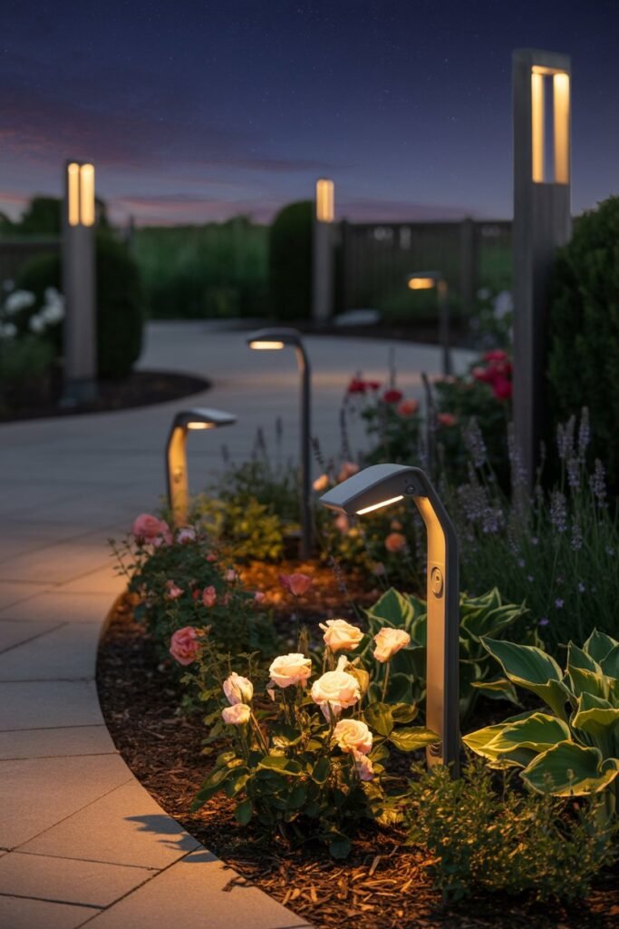 Solar-powered stake lights offer an affordable way to keep flower beds visible after dark. I suggest these for budget-conscious gardeners who still want impact.