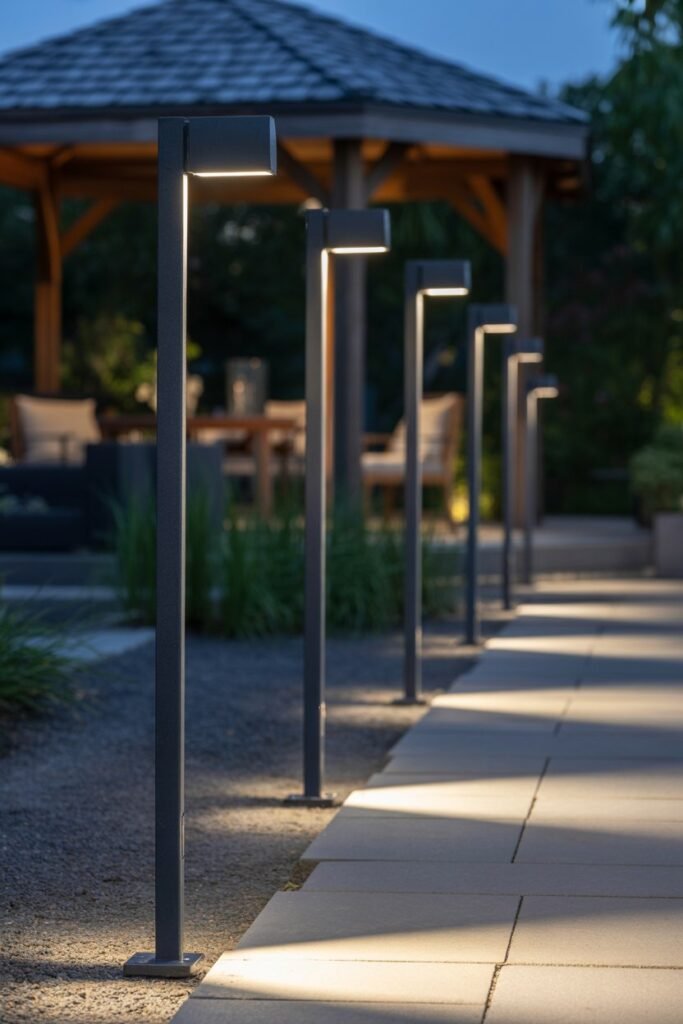 For a more formal look, consider bollard lights mounted on vertical posts instead. Both options provide pathway definition without complex installation.