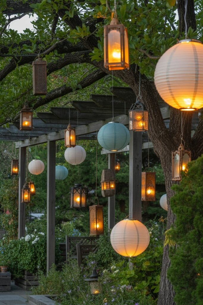 I find that hanging lanterns from posts or tree branches adds instant charm to any garden. The trick is placing them at different levels to create visual interest.