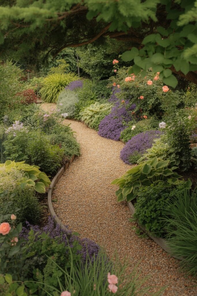 I’m a big advocate for gravel pathways when you want your plants to be the star of the show. A narrow gravel path provides the necessary function while letting your flowers and foliage take center stage.