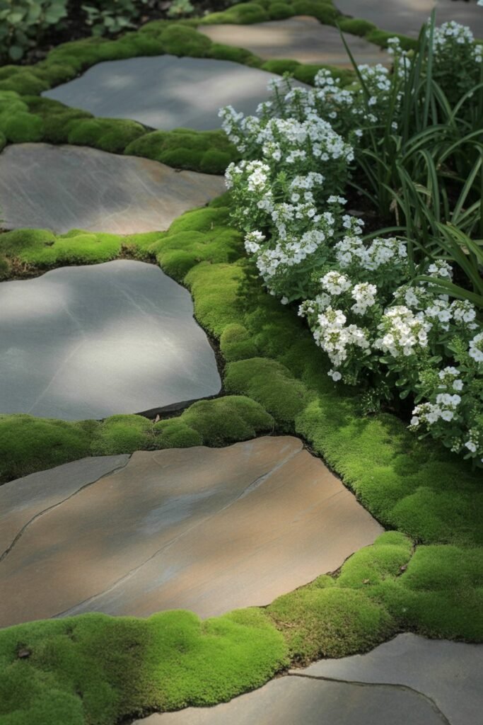 I often pair this with a longer bed of alyssum twisting along the walk for added color and fragrance. The moss stays low and doesn’t require mowing, making it a practical choice. It also handles foot traffic reasonably well, though I recommend keeping it to moderate use.