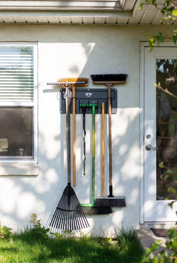 I always recommend getting tools off the ground as a first step. A hanging organizer is a brilliant way to keep long-handled items like rakes, shovels, and brooms neat and tidy.