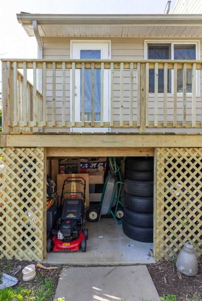 If you have a raised deck, you are sitting on a goldmine of storage. I suggest skirting the bottom of the deck with lattice or wood and adding a door to access the space underneath.