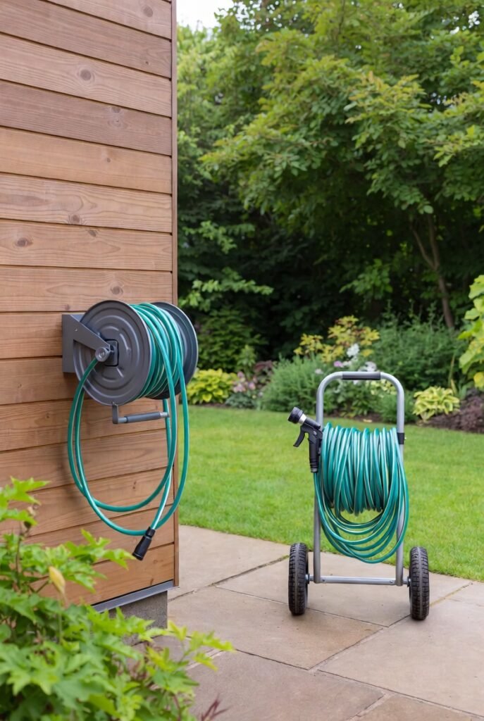 Nothing ruins the look of a manicured lawn like a green plastic snake coiled in the grass. I highly recommend investing in a wall-mounted hose reel or a portable cart.