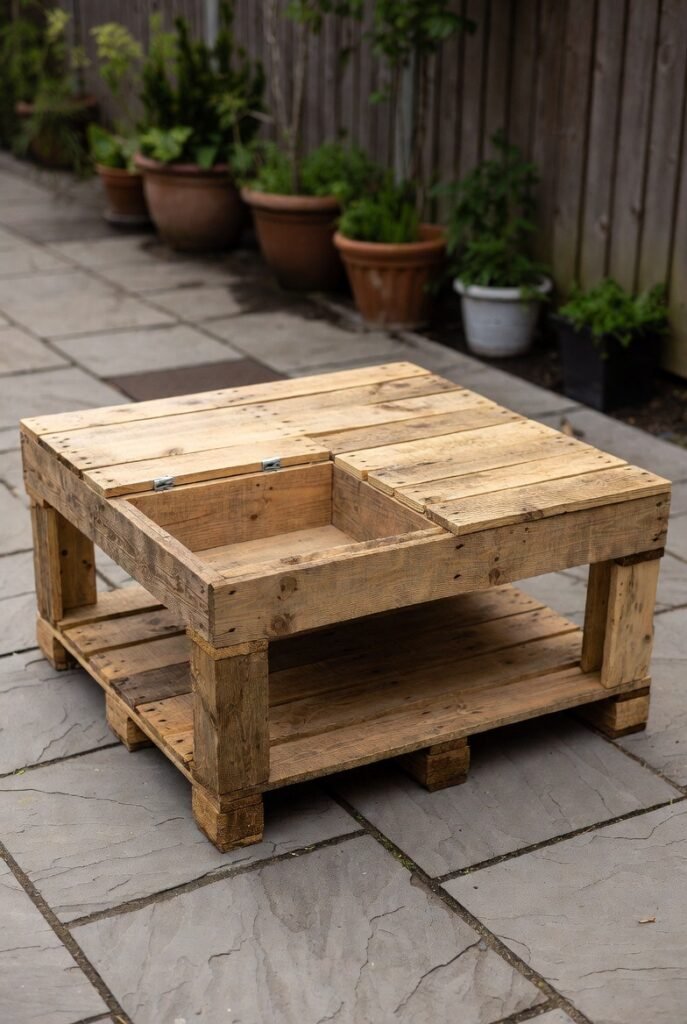 Design the table with open sides or lift-up tops to create storage nooks for magazines, coasters, or blankets. It adds a rustic, custom touch to your patio that you can proudly say you built yourself.