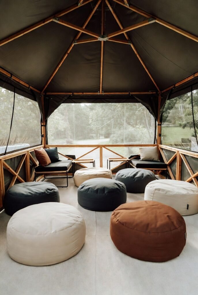 I find poufs to be the most versatile accessory you can buy. You can use them as footrests, extra seating, or even a side table if you use a tray. I love scattering a few around the gazebo for a relaxed, bohemian vibe.