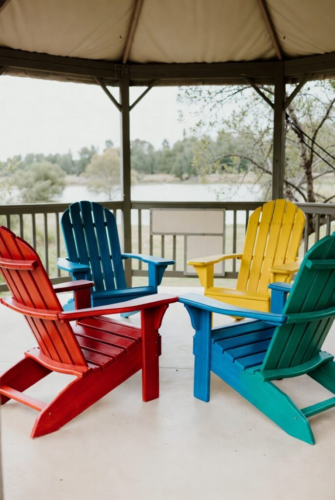 I find that arranging four Adirondack chairs in a circle creates a relaxed, campfire vibe. The low, slanted seat is iconic for comfort. While traditionally made of wood, I prefer the modern versions made from recycled plastic (HDPE).