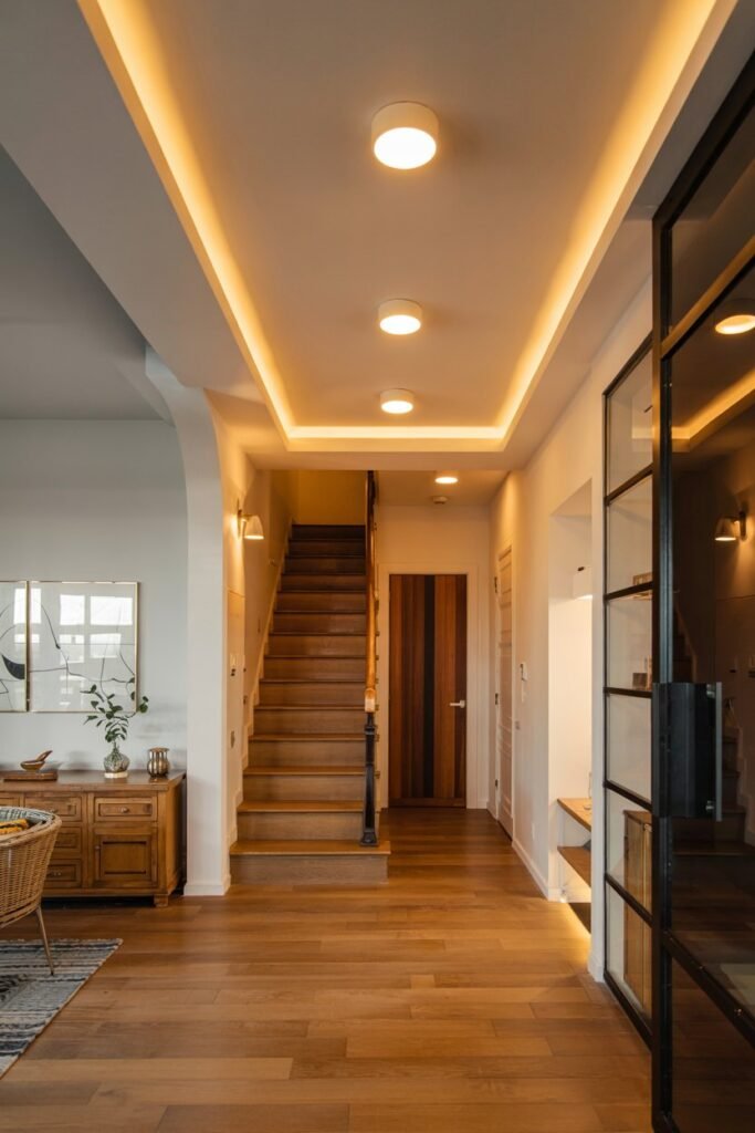 For accent lighting, placing LEDs near artwork or architectural features enhances visual interest. LED strips work well in coves or along staircases for subtle guidance lighting.