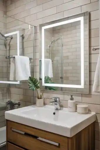 LED lighting integrated into bathroom mirrors offers both functional and aesthetic benefits. It provides consistent illumination that reduces shadows, improving tasks like shaving or applying makeup.