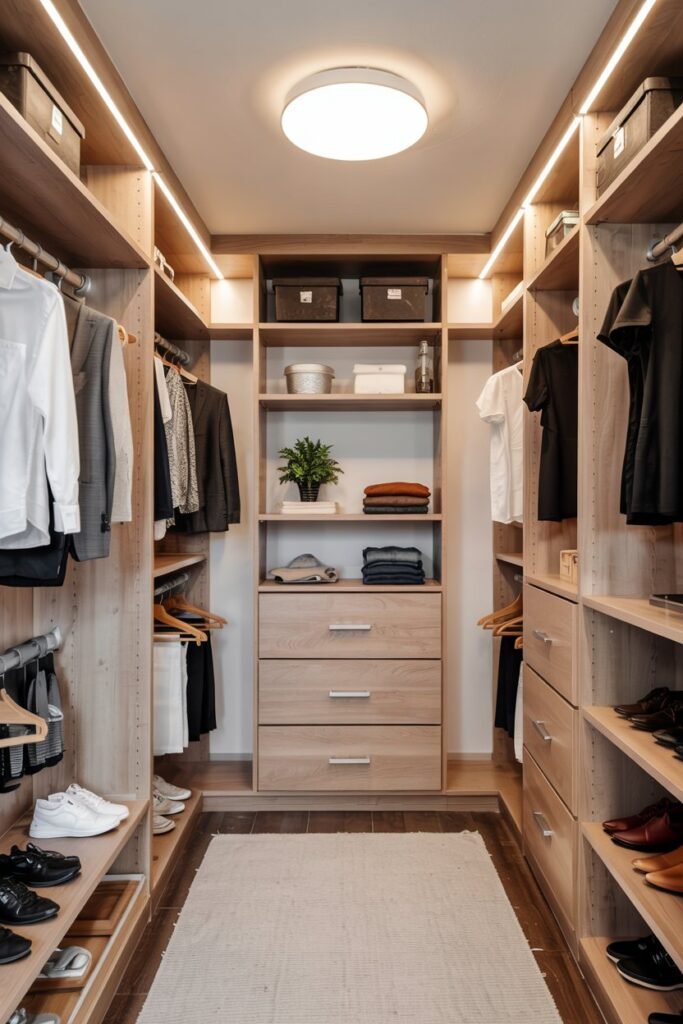 LED lighting is ideal for closets due to its energy efficiency and long lifespan. It produces minimal heat, making it safe for enclosed spaces.