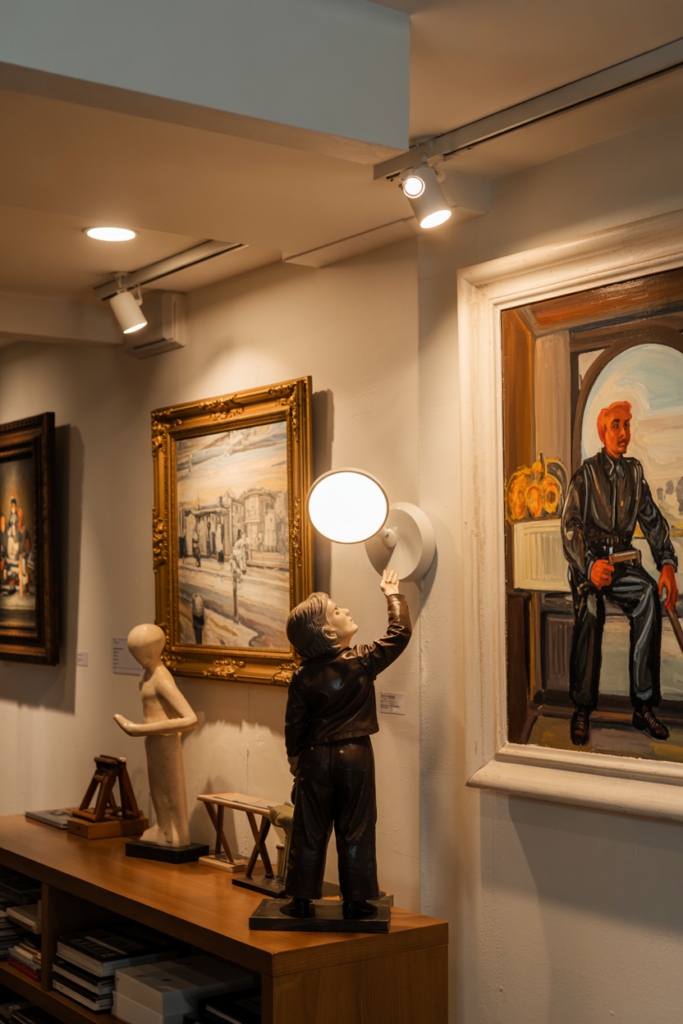 Adjusting the angle and intensity helps avoid glare and shadows, ensuring the art is evenly lit. LED spotlights are energy-efficient, long-lasting, and produce minimal heat, protecting delicate pieces.