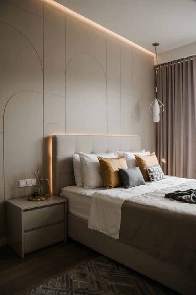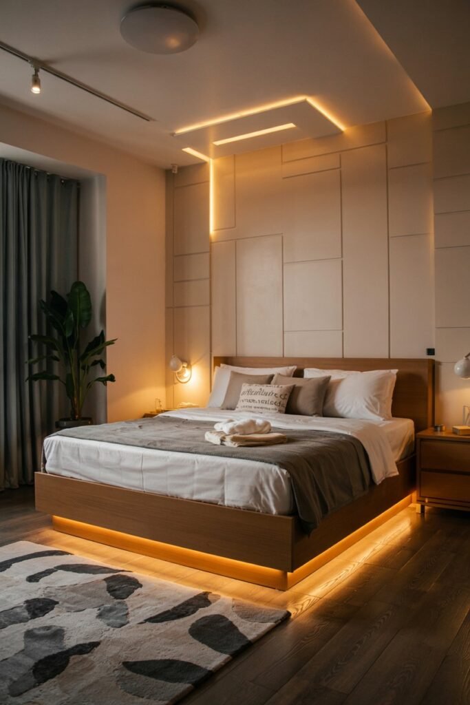 LED headboard lighting can be DIY or purchased as part of a customized unit. It enhances comfort while contributing to a modern and elegant bedroom design.