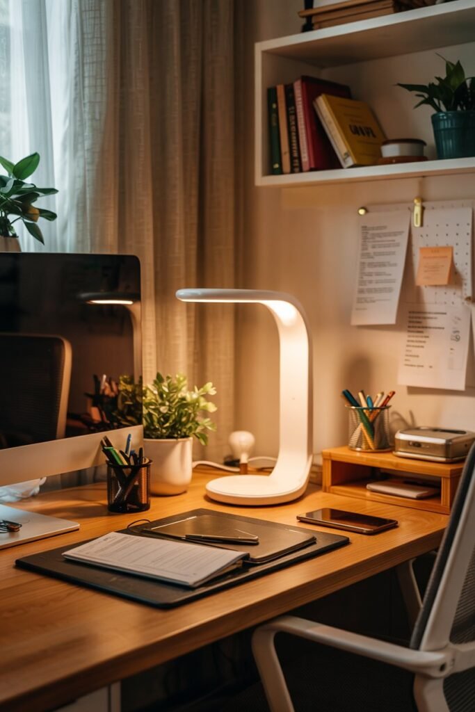 Adding LED light strips along desk edges can create a modern, organized workspace. This also enhances visibility without overwhelming the room’s ambient light.