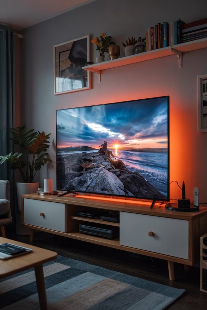 Some LED strips feature multi-zone lighting that syncs with on-screen content, adding immersion during movies and games. This setup suits various TV sizes and styles.