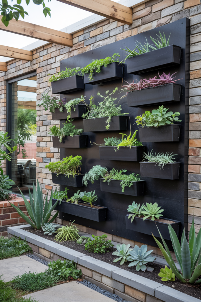 Vertical gardens maximize growing space without expanding ground maintenance, and they’re perfect for small yards or urban settings where horizontal space is limited.