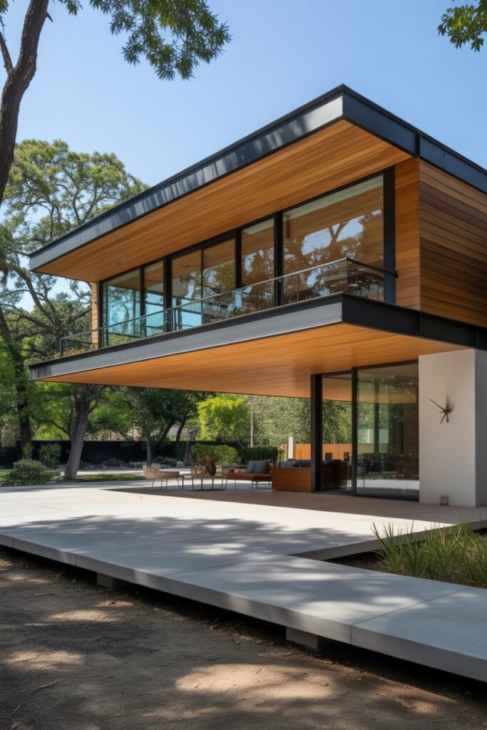 Straight, unadorned columns support this overhang. The design embraces minimalism, proving that simple, functional elements can make a powerful architectural statement.