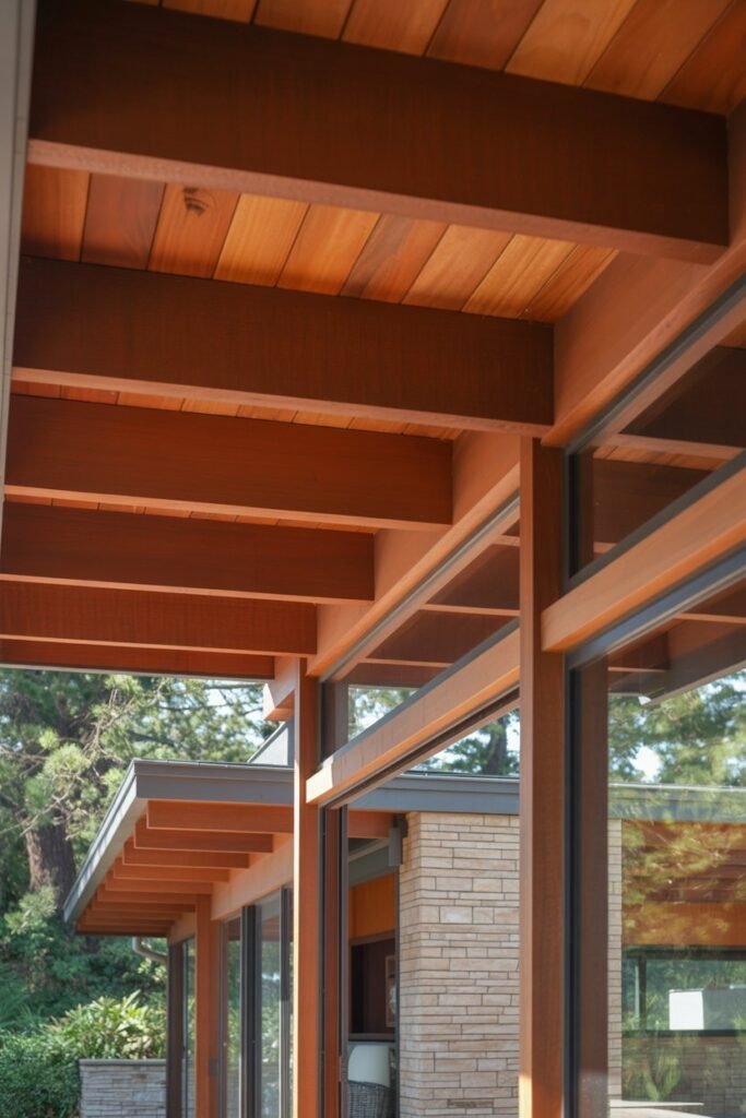 Exposed wood beams create a strong visual line that draws the eye and connects the inside of the home with the outside. It’s a simple yet powerful detail that emphasizes structural honesty and craftsmanship.