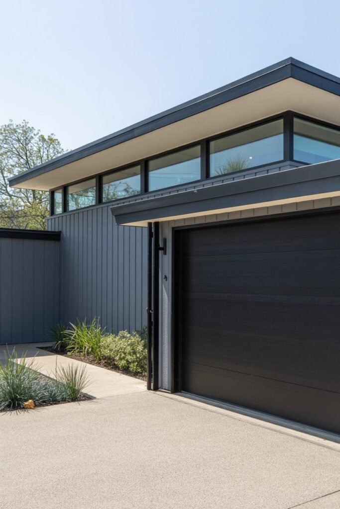I was amazed to see how a simple coat of paint could completely transform a home. This before-and-after shows a mid-century house getting a major upgrade with a classy gray exterior and bold black garage doors.