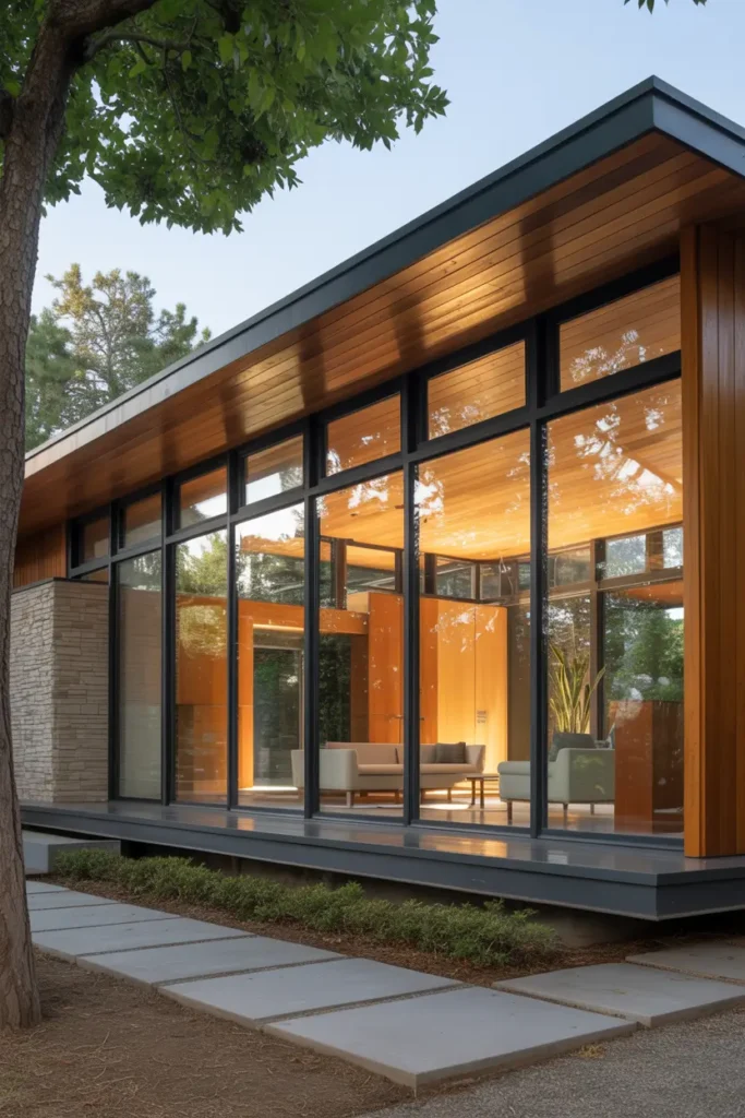This dramatic roofline lifts the corners of the home upward, creating a sense of openness. It’s an iconic element that gives the house a dynamic, wing-like appearance.