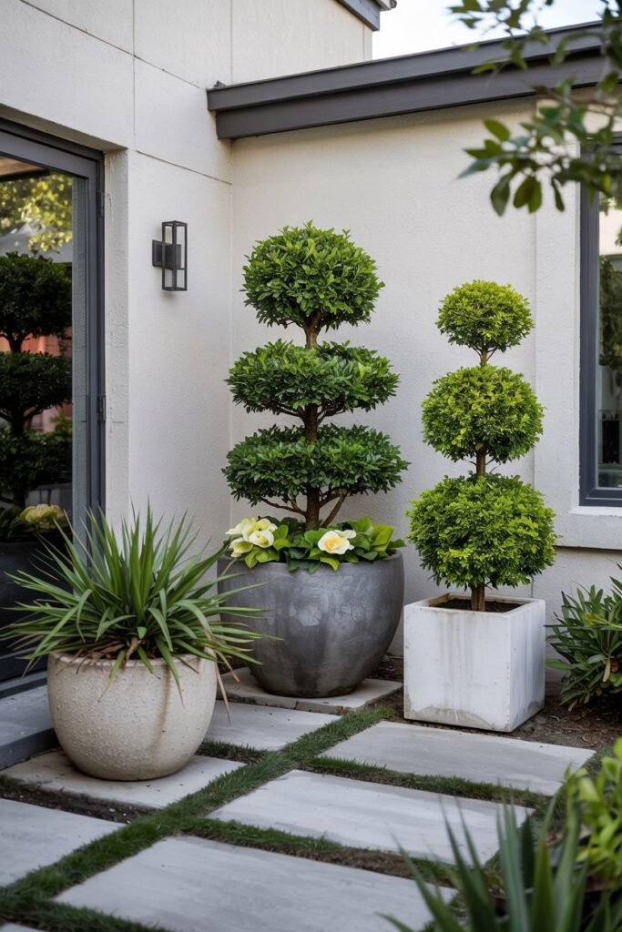 Instead of scattering multiple small pots around my backyard, I invest in several large statement planters. These architectural vessels featuring small trees, shrubs, ornamental grasses, or dramatic flowers create instant focal points.