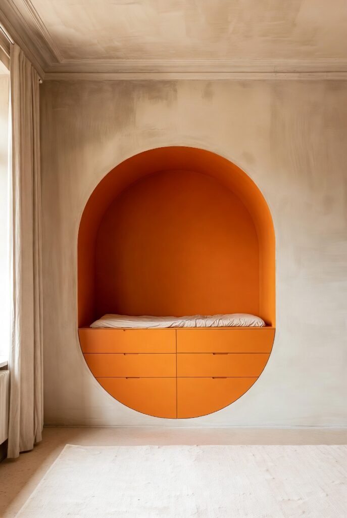 When I think about bedroom colors, my mind usually goes to calm blues, peaceful grays, or crisp whites. Orange? Not so much.
