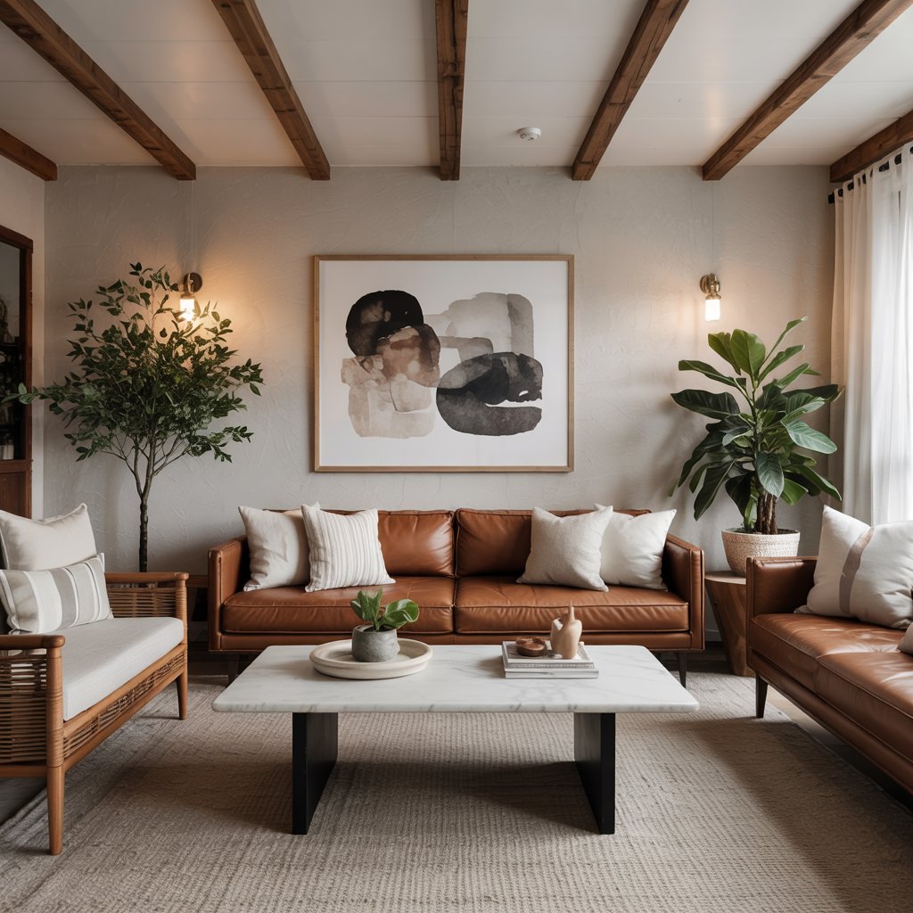 I achieve a minimalist’s dream by focusing on neutral color palettes and sleek silhouettes. I select simple bench-style coffee tables and mid-century-inspired leather sofas for clean lines.