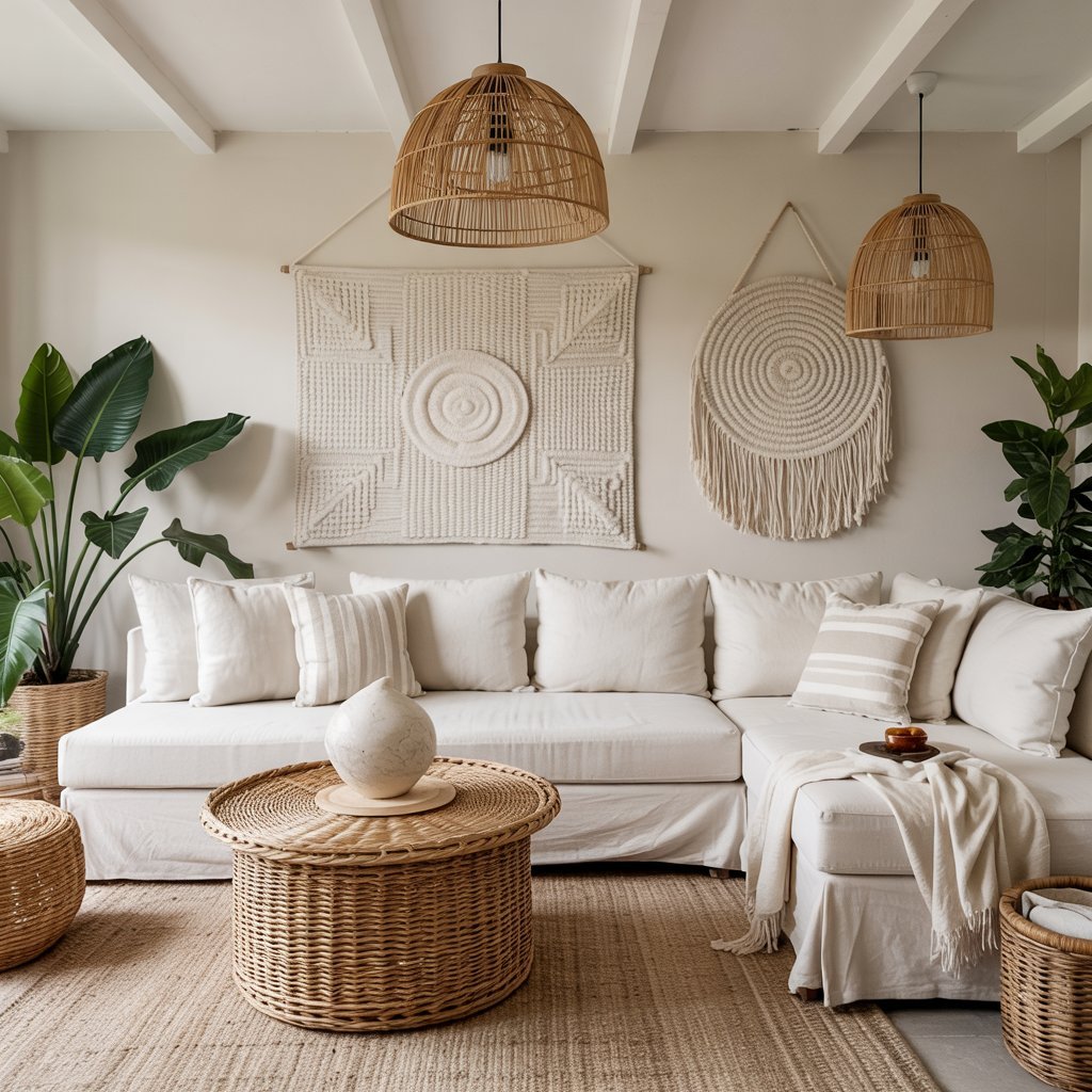 I incorporate textured throws and wicker pendant lamps for visual interest. These small additions make a considerable impact while maintaining the space’s serene, unified atmosphere that organic modern style is known for.