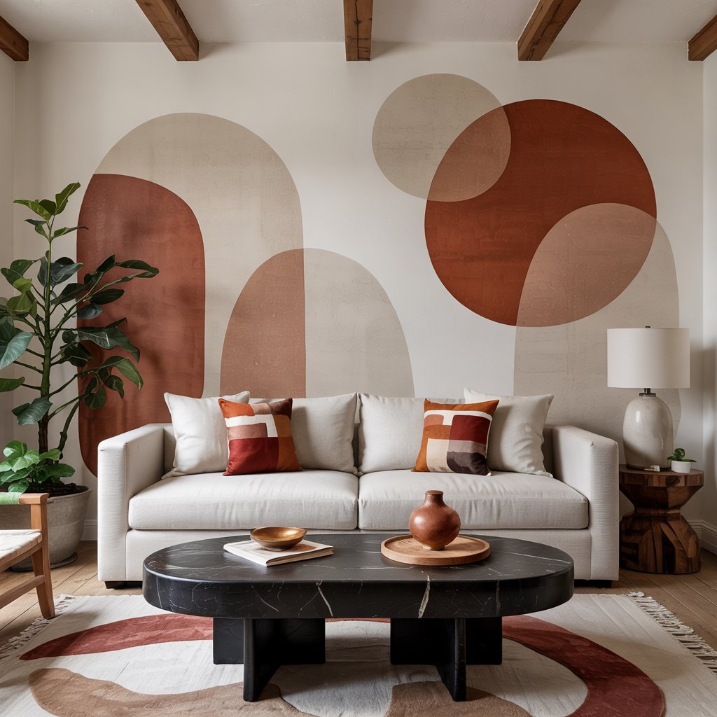 I incorporate colors outside the typical neutral palette by using strategic pops of terra cotta and rust. I balance these warmer hues against a predominantly cream-colored foundation.