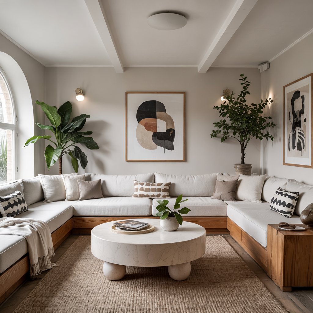 I add subtle life to the space with carefully placed foliage and abstract throws. This approach creates a lived-in feel without compromising the sophisticated, streamlined aesthetic that defines contemporary organic modern design.