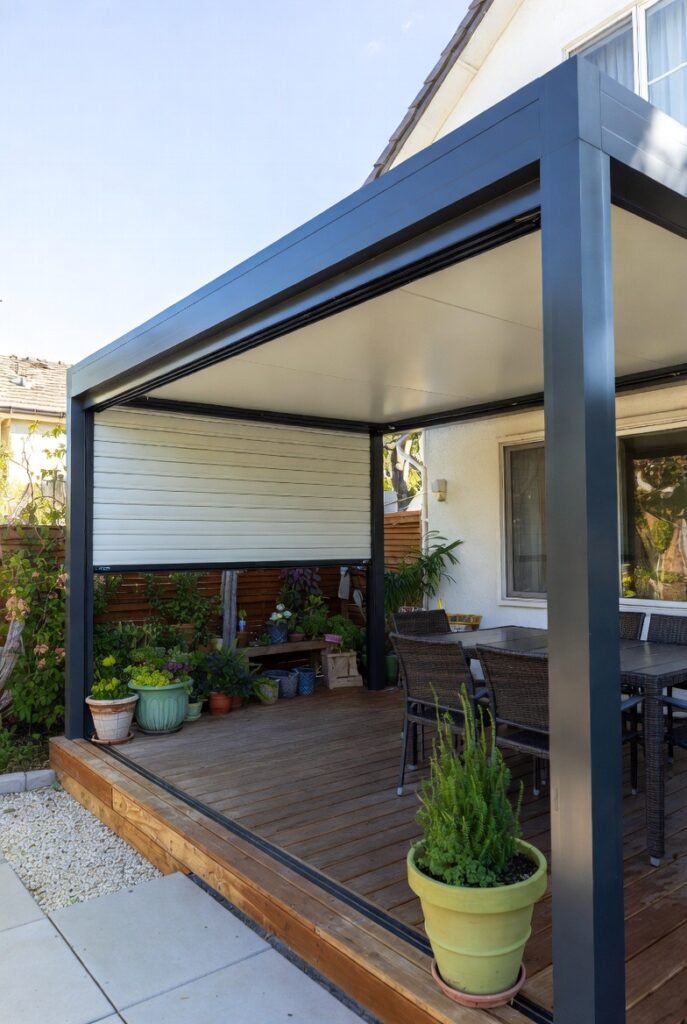 A motorized louvered pergola offers the ultimate flexibility. With just the push of a button, I can adjust the slats to let the sun in or close them completely to create a waterproof roof.
