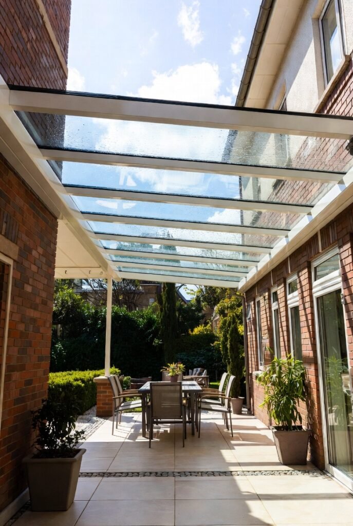 To manage the sun’s heat, I recommend using tinted or UV-protected glass. A glass roof gives my patio a sophisticated, modern feel and is perfect for stargazing on clear nights, right after a rain shower.