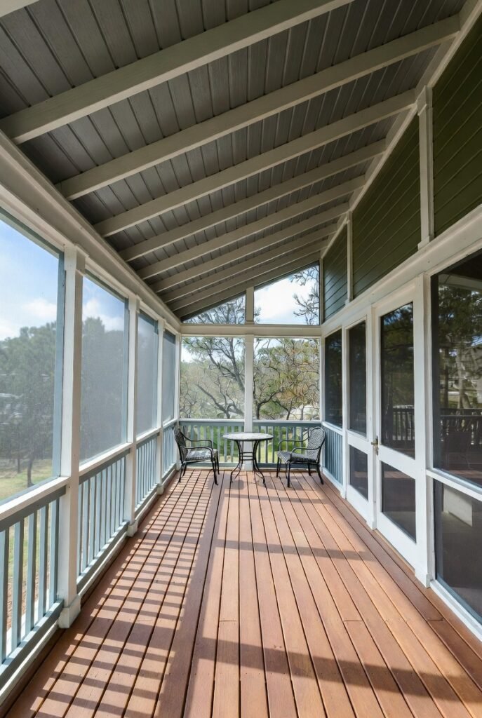 A solid roof is essential for this design. The screens allow for excellent airflow while providing a barrier against the elements, making it one of the most comfortable ways to enjoy the outdoors.