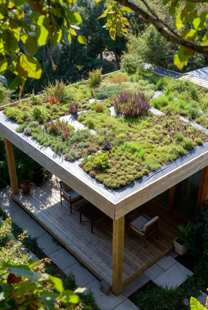 For an eco-friendly and truly unique design, I can create a living roof over my patio. This involves planting vegetation on top of a waterproof membrane.