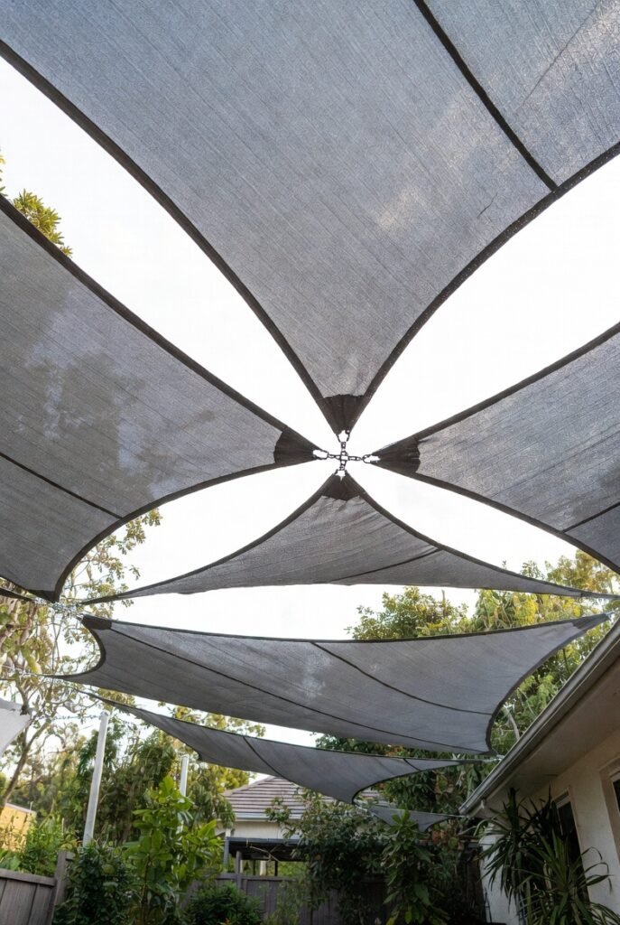 I often use multiple sails, overlapping them at different angles and heights to ensure full rain coverage. It’s an artistic approach that adds a lot of visual interest and provides effective protection.