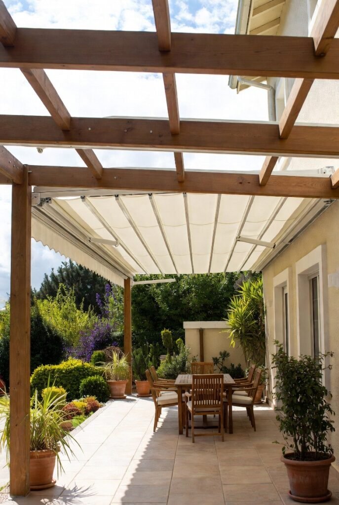 This hybrid approach gives me the best of both worlds: the architectural beauty of a pergola and the on-demand coverage of an awning. When it rains, I simply extend the canopy to keep everything dry.