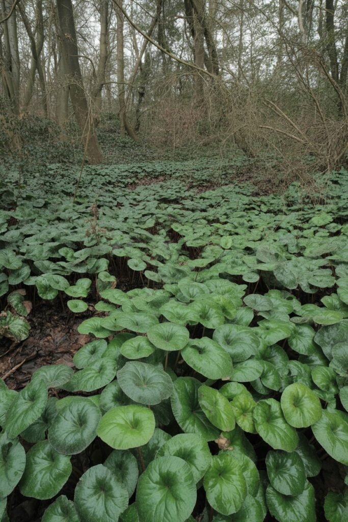I grow European Wild Ginger specifically for its glossy foliage that stays green in mild winter areas. This groundcover forms attractive mats of heart-shaped leaves that provide consistent color in shaded garden areas.