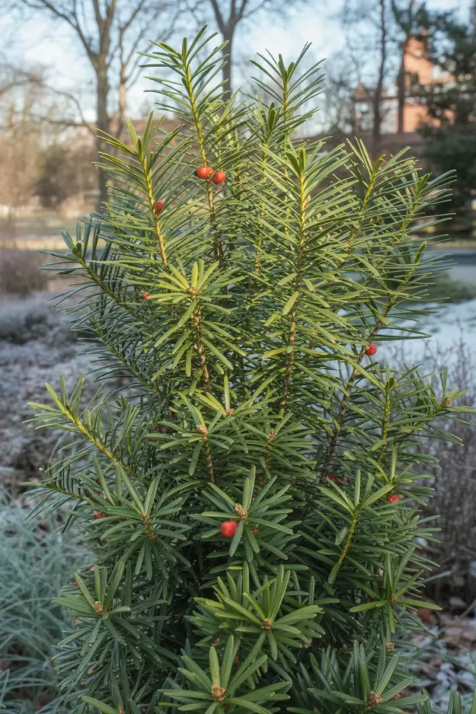I grow yews in zones 4-7, where they provide reliable green coverage and can be shaped into formal hedges or left natural. Their durability and consistent performance make them foundational plants in many of my winter garden designs.