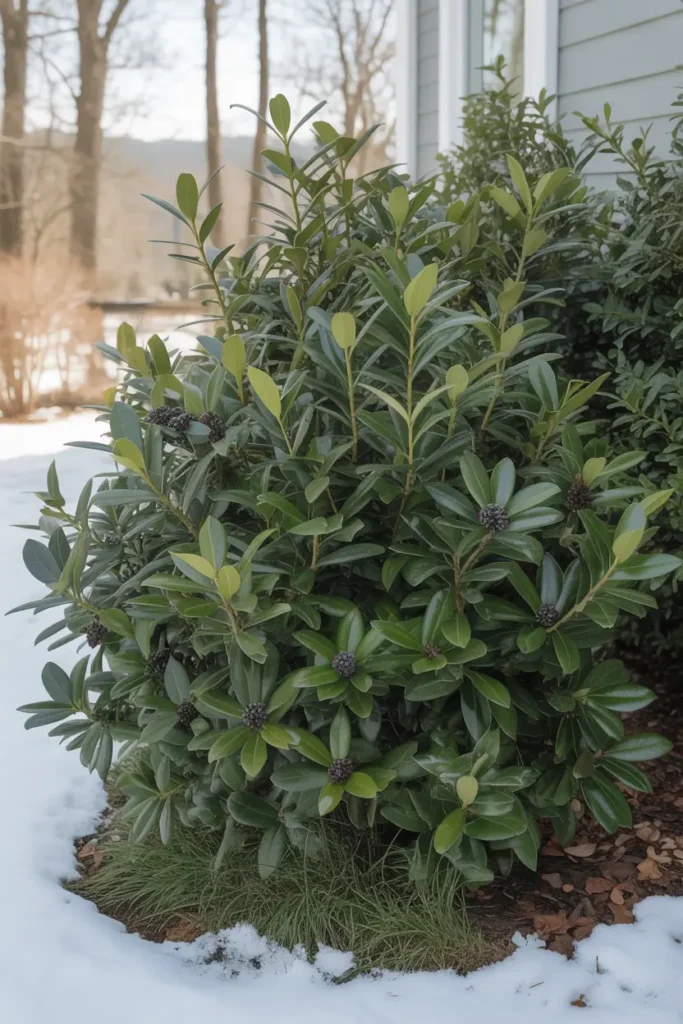 I consider yew one of the most versatile evergreen shrubs for maintaining green color throughout winter. Varieties like Stonehenge offer narrow habits and excellent shade tolerance, making them adaptable to various garden situations.