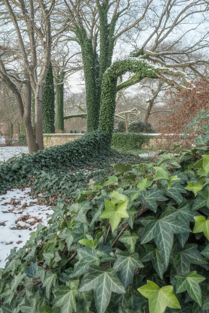 I include English Ivy with caution because of its aggressive nature, but I can’t deny its effectiveness at maintaining dark green color all winter. The vines create thick groundcover that stays vibrant when most other plants look dormant.