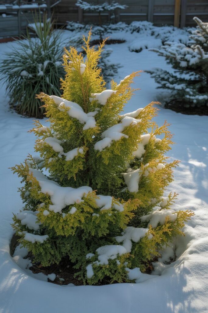 I love how False Cypress varieties like Soft Serve Gold provide both style and structure with their year-round interest. These evergreens look particularly magical after snowfall, when their distinctive foliage shapes are highlighted against white backgrounds.