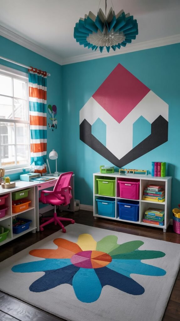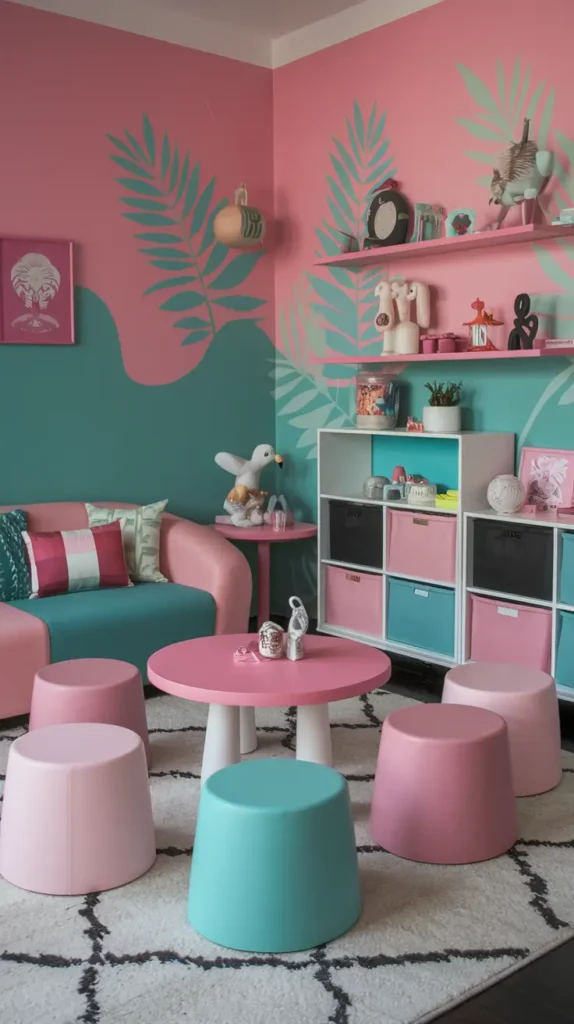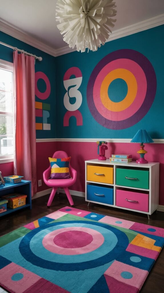 This approach is incredibly versatile. You can pull in colors from furniture, toys, and pillows, creating a cohesive yet playful look. It’s an easy way to design a vibrant space that feels fun and full of energy, just like a party.