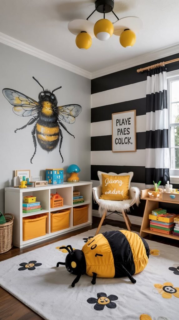 I adore the cheerful combination of black, white, and yellow. It’s a palette that takes its cues from nature’s busiest pollinator and feels both playful and surprisingly chic. The clean white base brightens the room, while the black adds a touch of graphic sophistication.