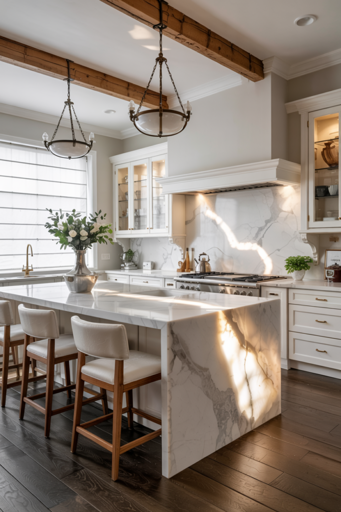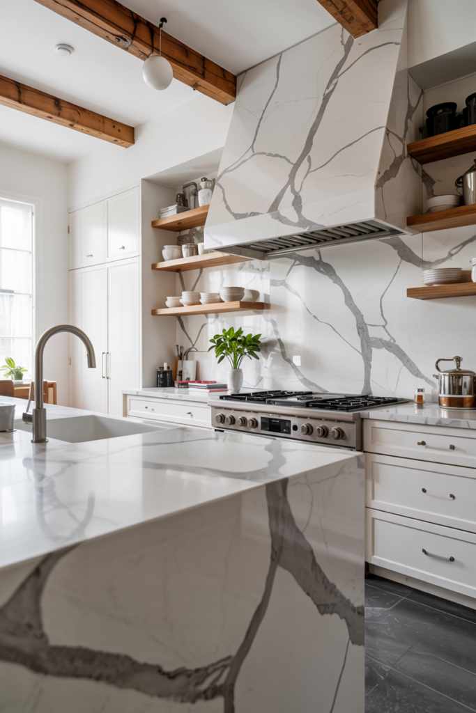 This material resists etching and staining better than marble. I recommend it for busy kitchens where beauty and practicality must coexist.
