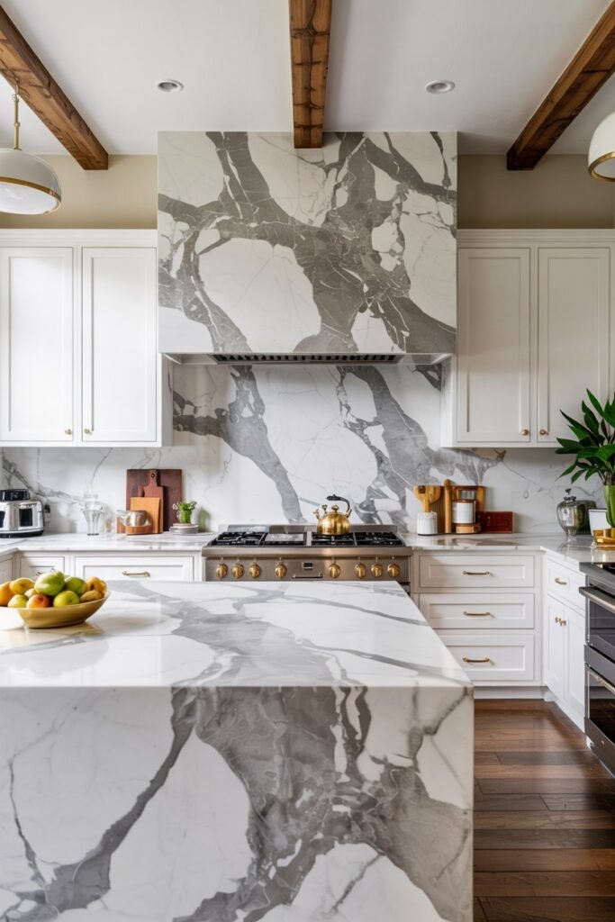 I recommend Calacatta marble when clients want to make a dramatic statement. The bold gold and gray veining against the white background creates an unmistakable luxury feel.