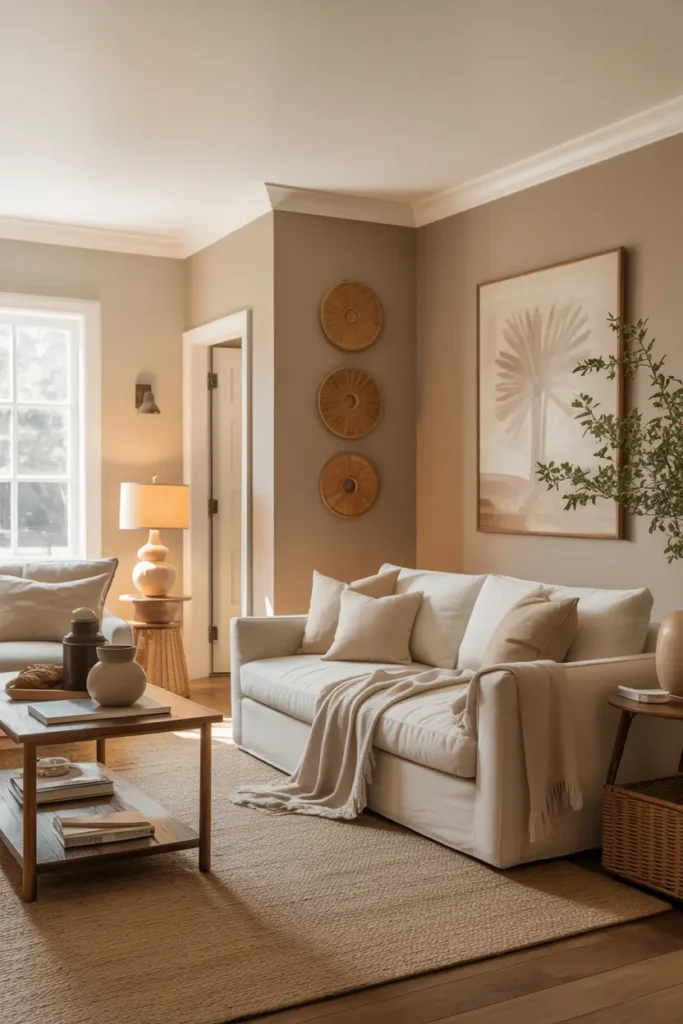 You can’t go wrong with warm neutrals. I love this scheme because it creates an inviting and cozy atmosphere that feels like a warm hug. It relies on shades of beige, cream, and taupe to build a gentle, welcoming foundation.