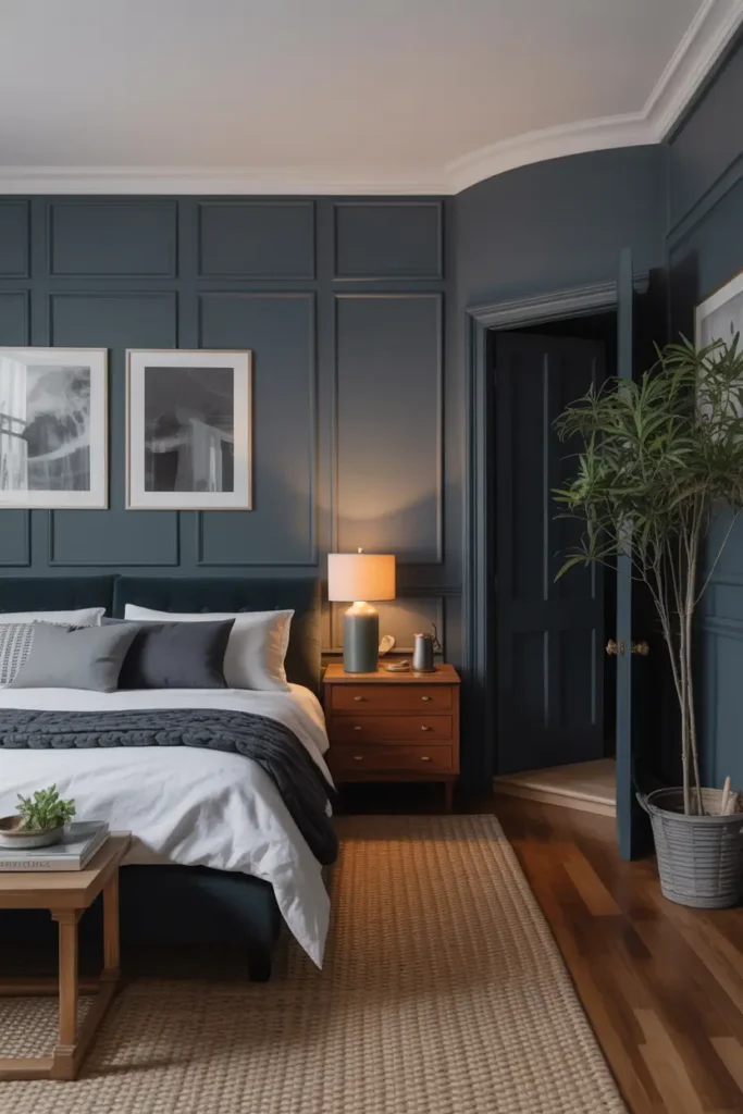 For a cozy, intimate, and dramatic feel, I go for a moody palette. This scheme uses deep, saturated colors like charcoal, navy, and dark green to create a sophisticated and enveloping space.