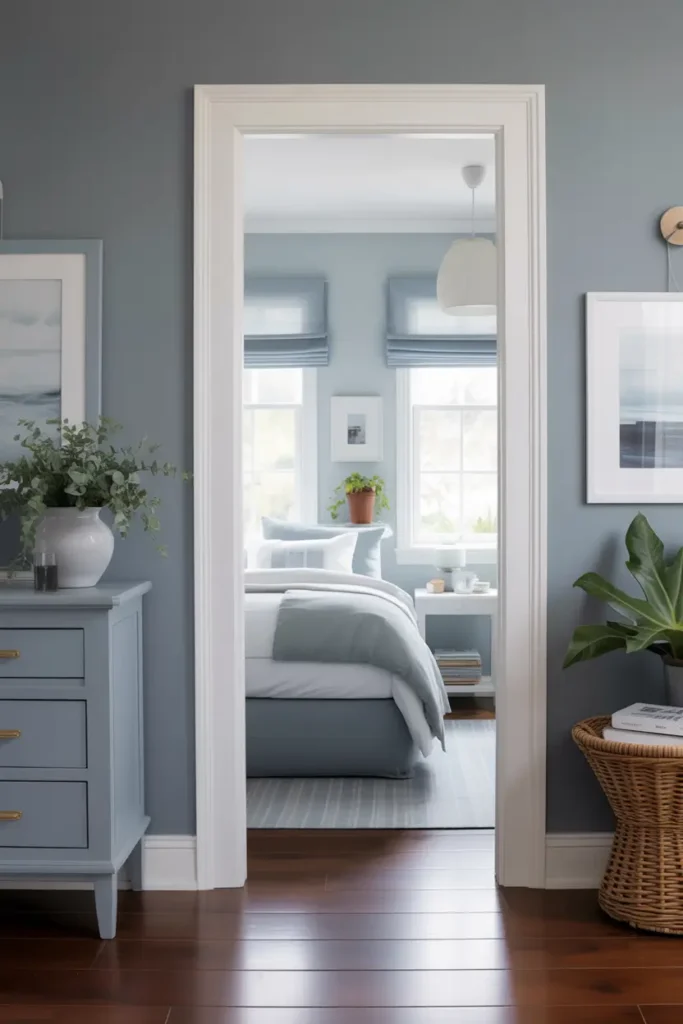 A light gray, like Benjamin Moore’s Gray Owl, is a fantastic main color. I pair it with a subtle blue-gray, like their Smoke color, in bedrooms or bathrooms for a spa-like feel. Crisp white trim makes the cool tones pop, creating a clean, modern look.