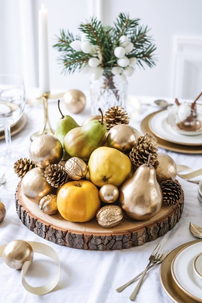 Pile these gilded treasures in a wooden bowl or crystal dish, then add a few gold ribbon curls for extra glamour. This centerpiece bridges the gap between natural and formal dining perfectly.