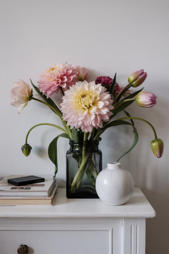 Sometimes, simplicity makes the strongest statement. Highlight the beauty of a single bloom, like a large dahlia or unique tulip, by placing it in a sleek bud vase.